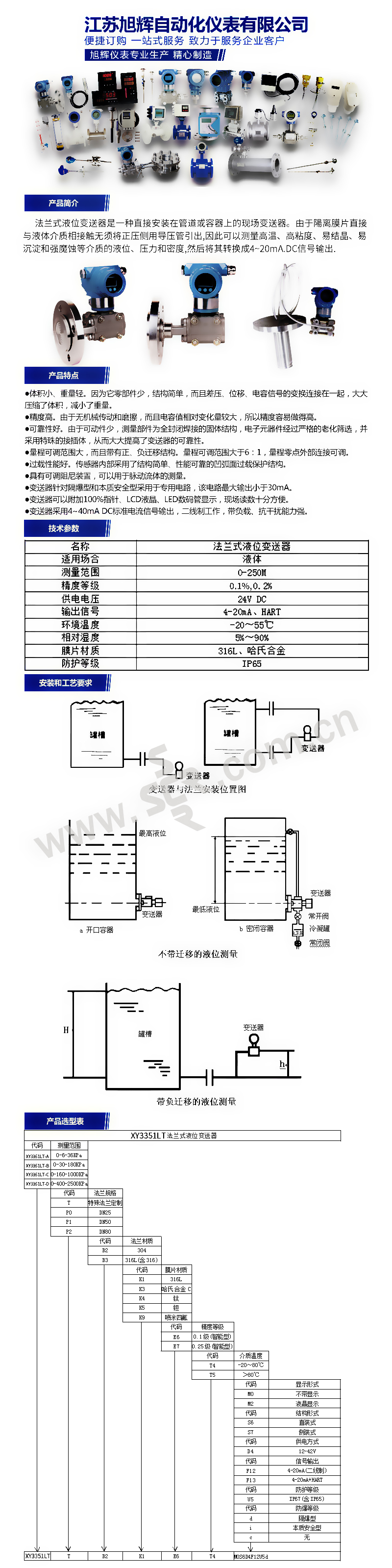 XUYI/旭仪 法兰式液位变送器 XY3351LT-AP1B2K1E7T4M2S7D4F13U5i 1台