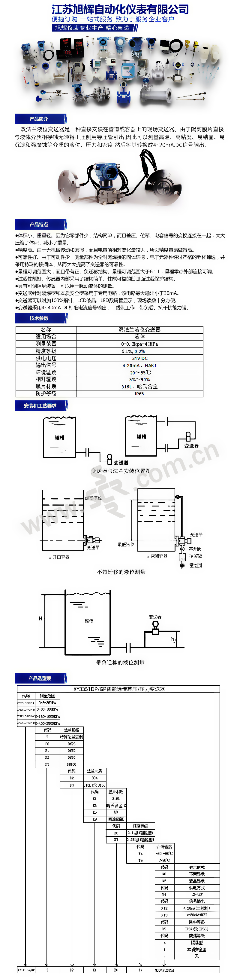 XUYI/旭仪 双法兰液位变送器 XY3351DP-AP1B2K1E7T4M2D4F13U5i 1台