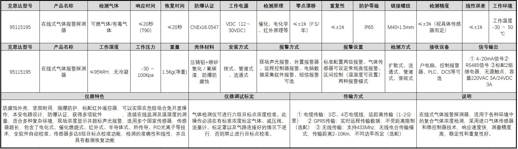 在线式气体报警探测器 95115195 重量1.5kg 1个