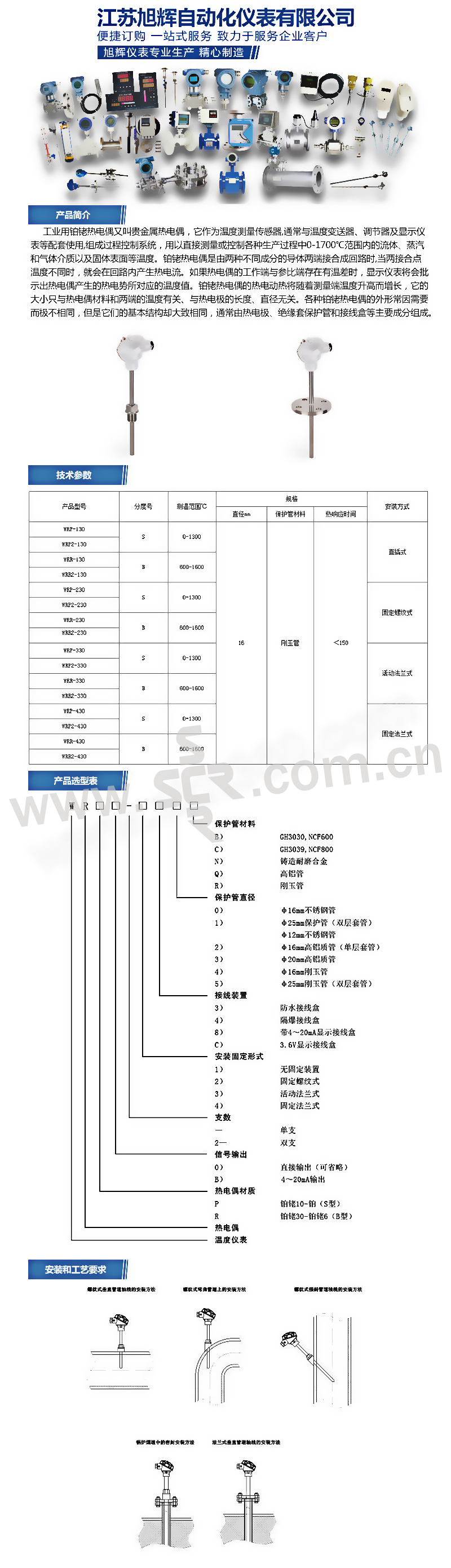 XUYI/旭仪 铂铑热电偶 WRP-431RL=1150×1000 DN50 PN1.0 1支