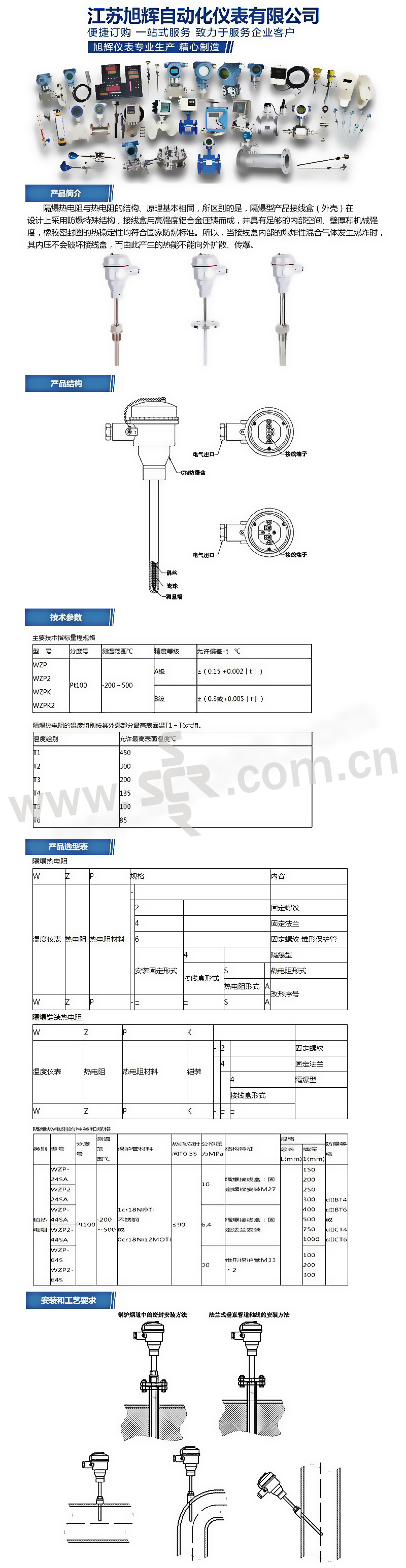 XUYI/旭仪 隔爆热电阻 WZPK2-440 L=650×500 DN40 PN4.0 1支