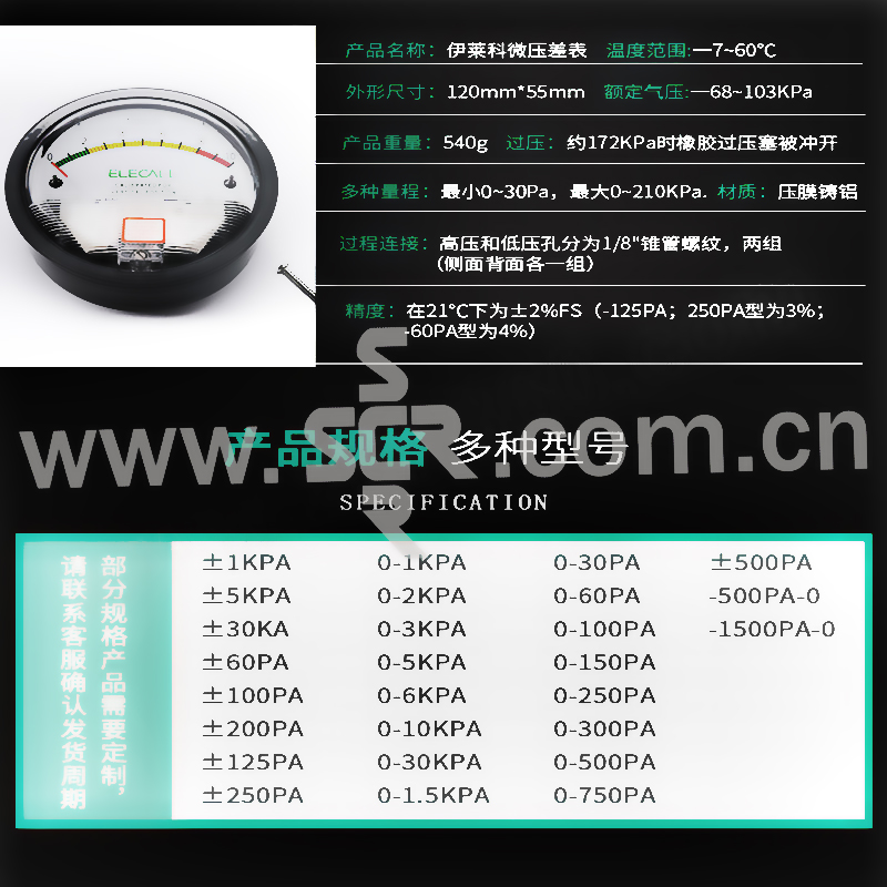 ELECALL/伊莱科 EM2000差压表 ±30Pa 1个