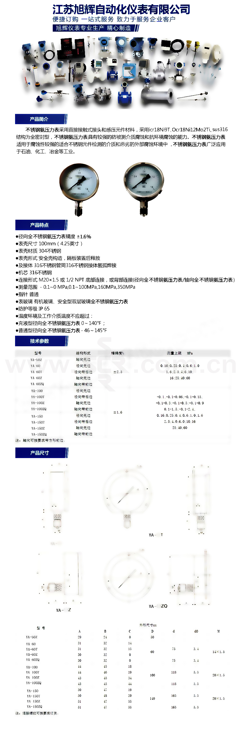 XUYI/旭仪 不锈钢氨压力表 YA-150BF 1块