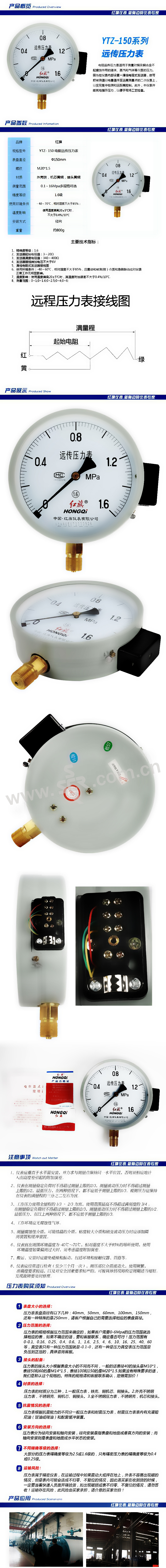 HONGQI/红旗 电阻远传压力表 YTZ-150 0~0.1MPa 1只