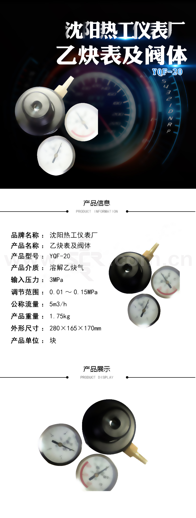 RG/热工 乙炔表及阀体 YQF-20 介质溶解乙炔气 输入压力3MPa 0.01~0.15MPa 5m3/h 1个
