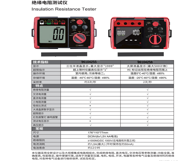 ·本仪器采用全新设计以及大规模集成电路相组合,完成绝缘电阻、直流电压,交流电压等参数测量;功能全面,准确度高,性能稳定,操作便捷可靠。