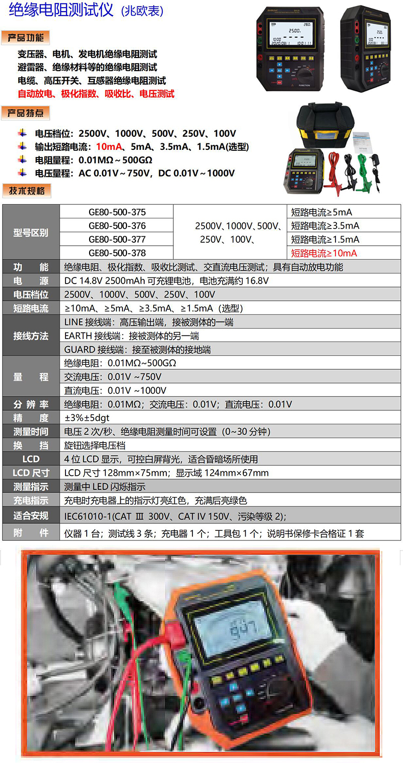 2500V,1000V,500V,250V,100V