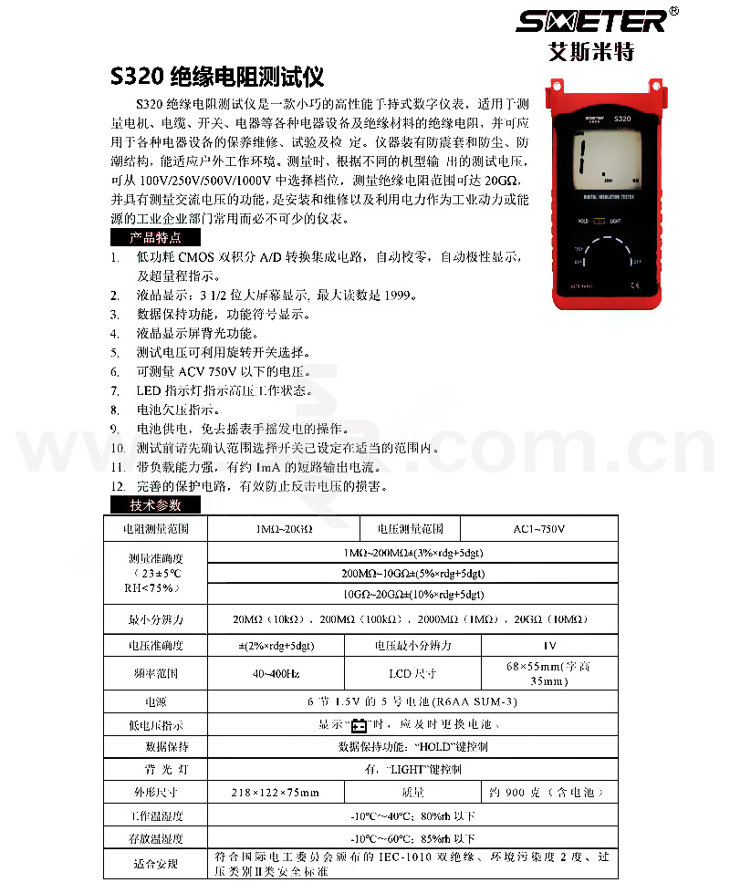 SMETER/艾斯米特 绝缘电阻测试仪 S320 1套