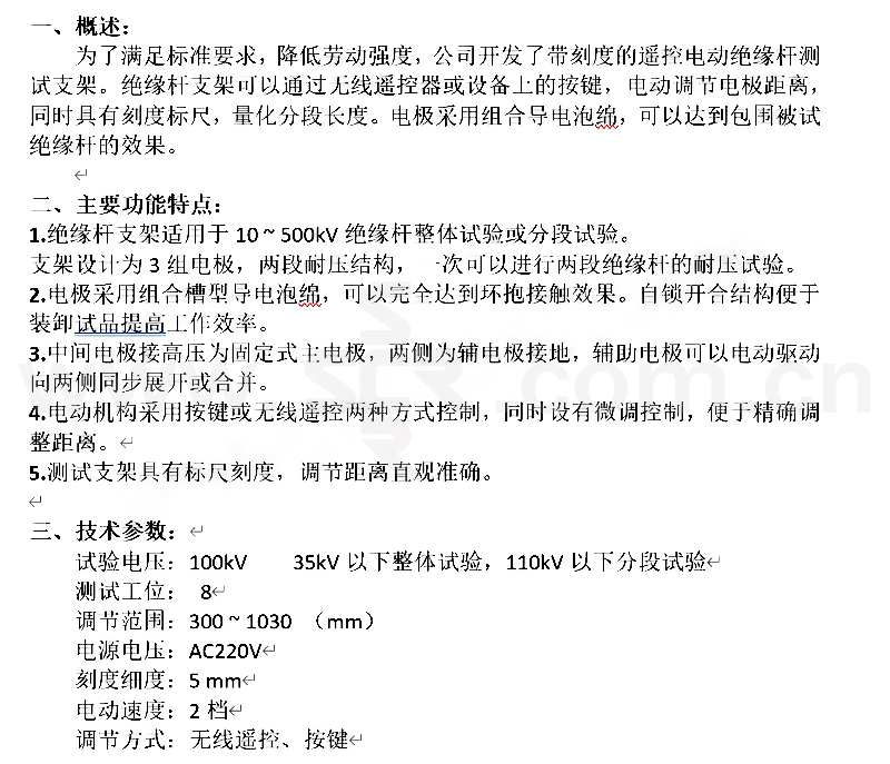 ·支架设计为3组电极,两段耐压结构,一次可以进行两段绝缘杆的耐压试验