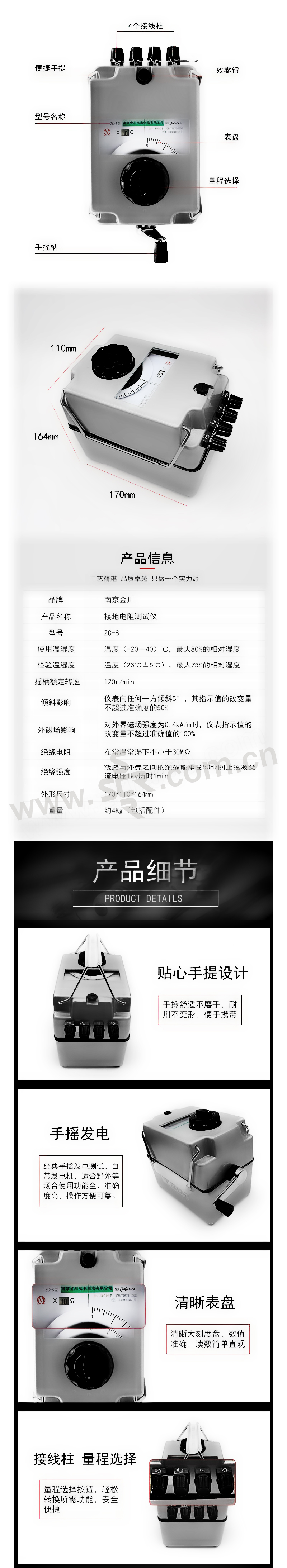 JINCHUAN/金川 ZC-8系列接地电阻测试仪 ZC-8 0~1000Ω 范围广 1台