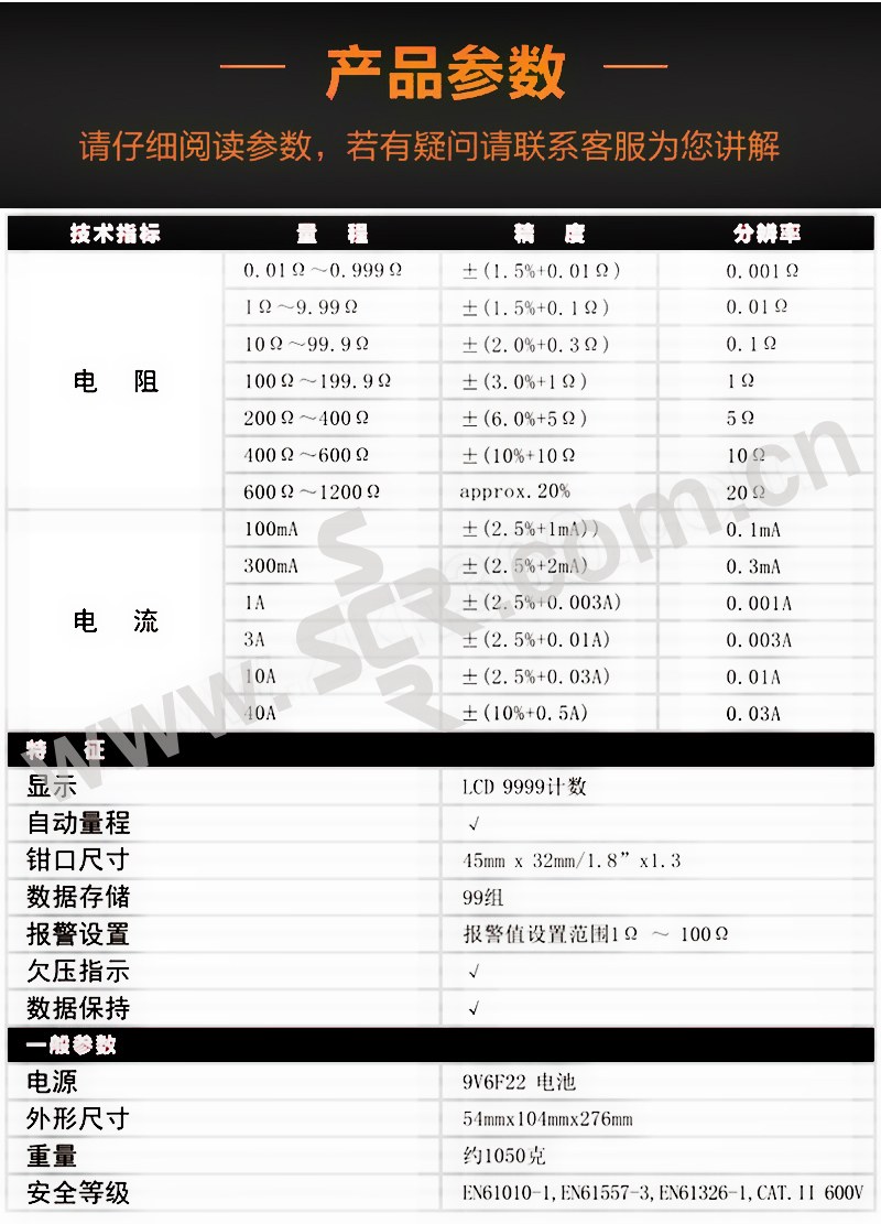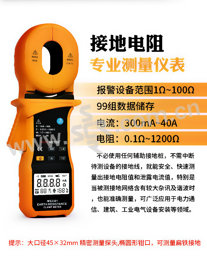 ·非接触式电阻测量,精密钳头40A电流