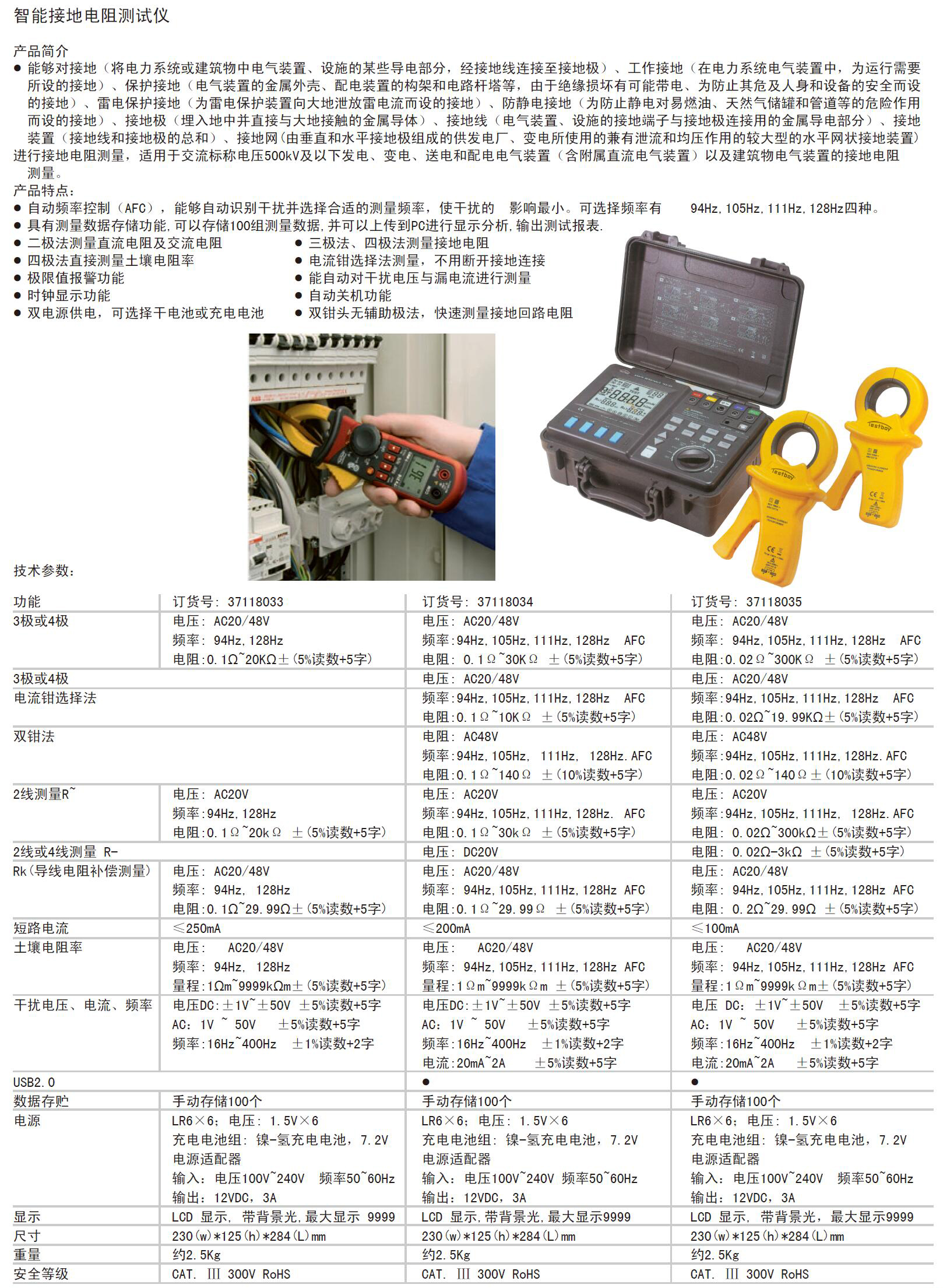 ·双电源供电,可选择干电池或充电电池 ·双钳头无辅助极法,快速测量接地回路电阻