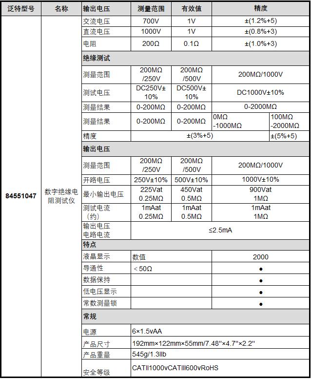 200MΩ/250V/200MΩ/500V/200MΩ/1000V/200MΩ/1000V |