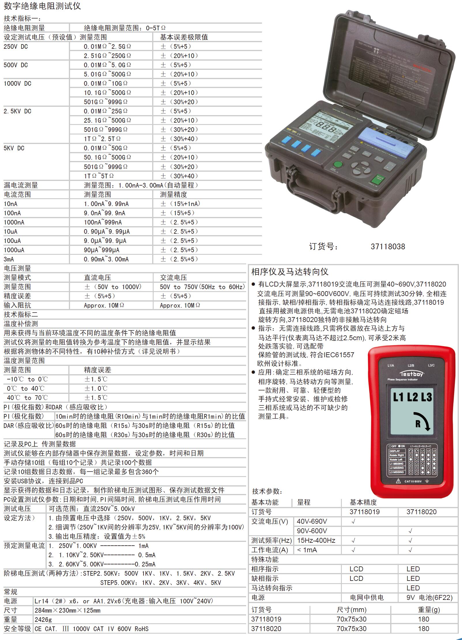 规格:  绝缘电阻测量范围:0-5TΩ 制造商型号:  37118038