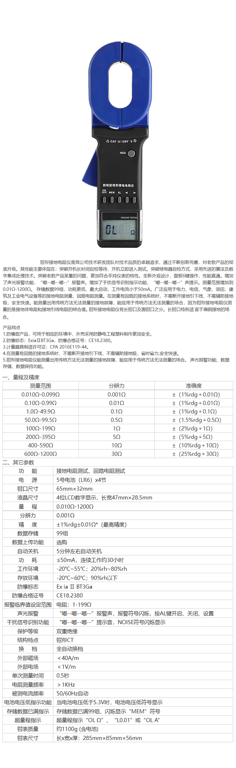 数显防爆型钳形接地电阻仪