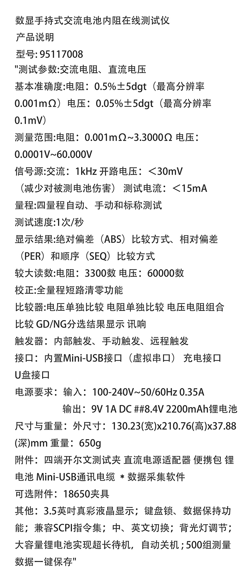 数显手持式交流电池内阻在线测试仪 95117008 130.23×210.76×37.88mm 1台