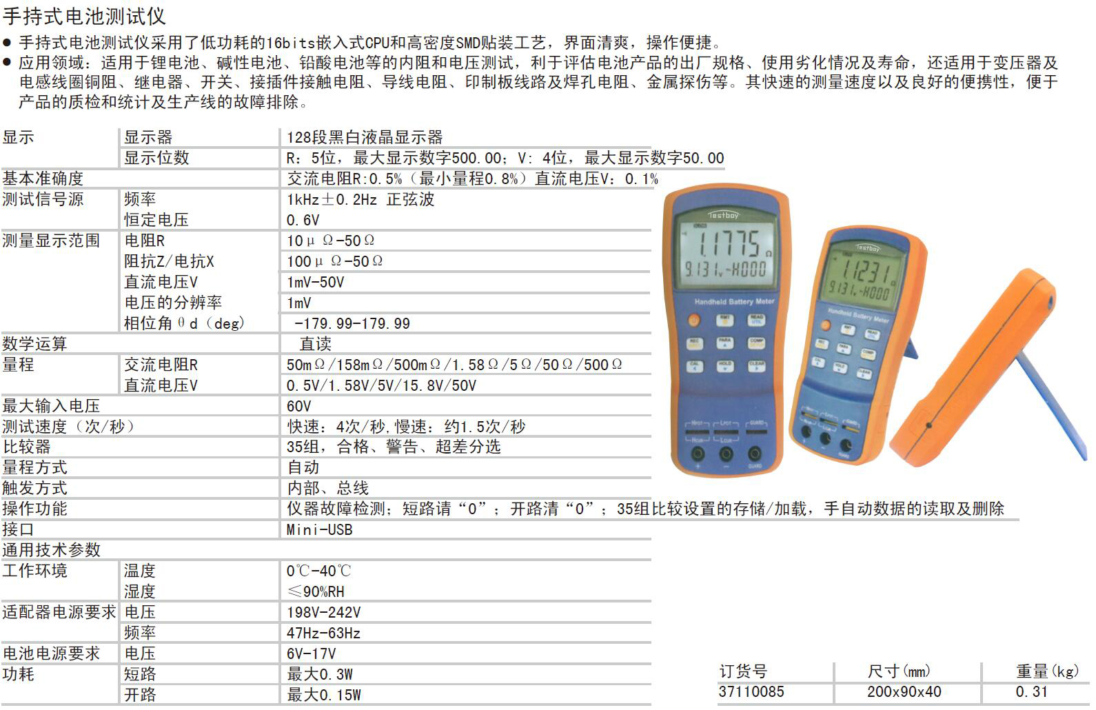 ·手持式电池测试仪采用了低功耗的16bits嵌入式CPU和高密度SMD贴装工艺,界面清爽,操作便捷。