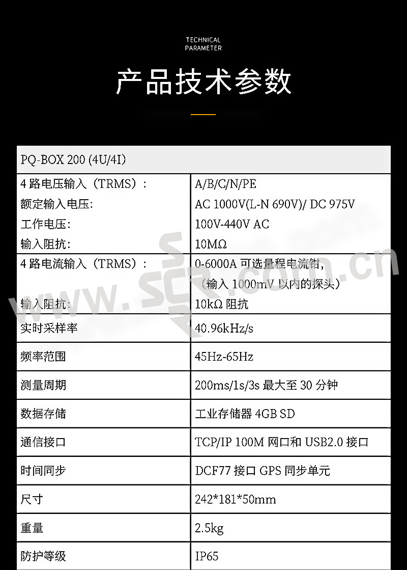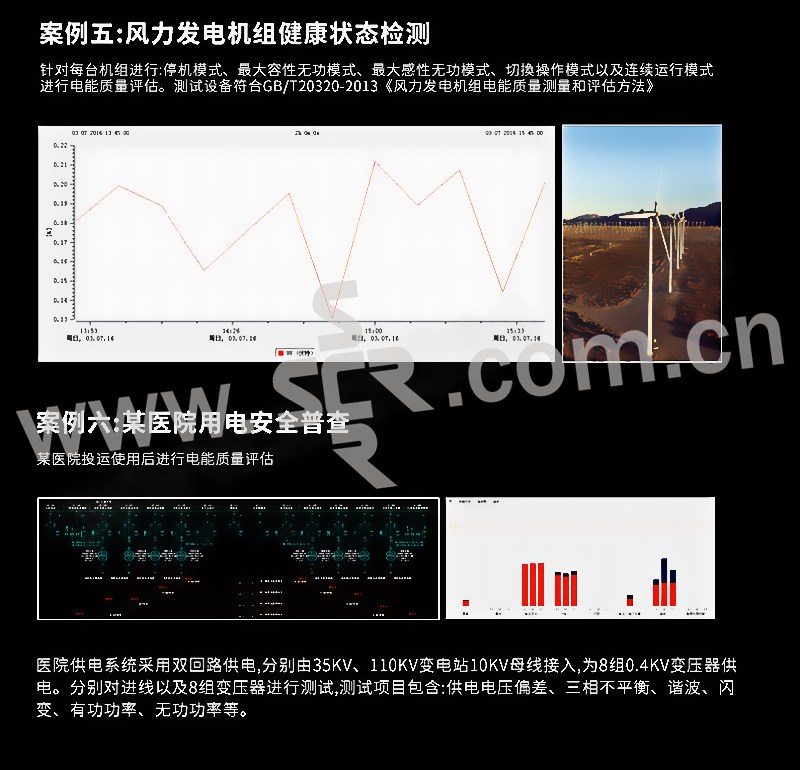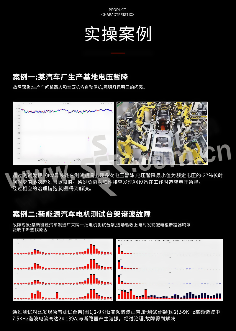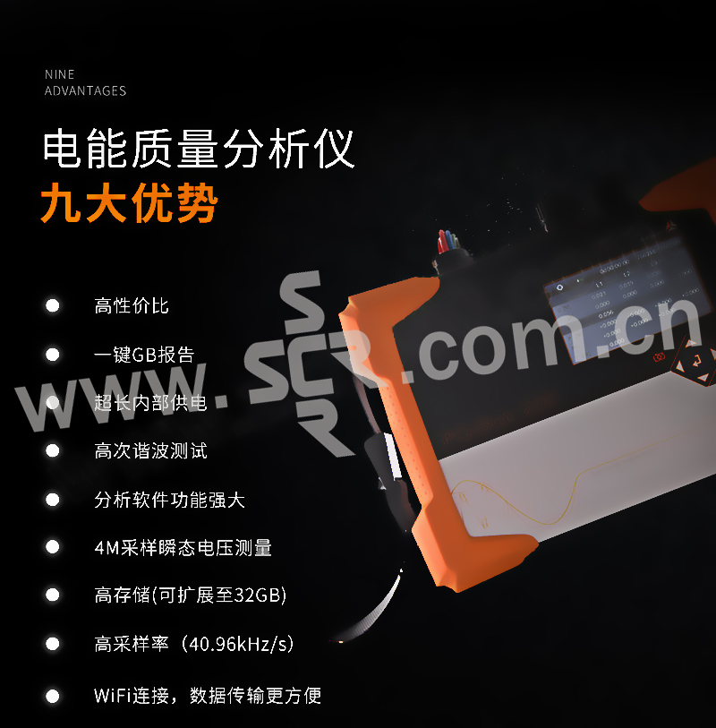 ·具有IEC61000-4-30A类仪器证书,2-50次谐波,2-9khz高频谐波测试,实时采样率40.96KHz,FFT傅里叶分析至20KHz,故障录波,模拟量输入接口,电压质量及偏差测试,频率偏差测试,三相不平衡测试,功率测试,闪变测试,远程控制,依据标准自动一键国标报告报表,免费全中文分析软件,IP65防护等级