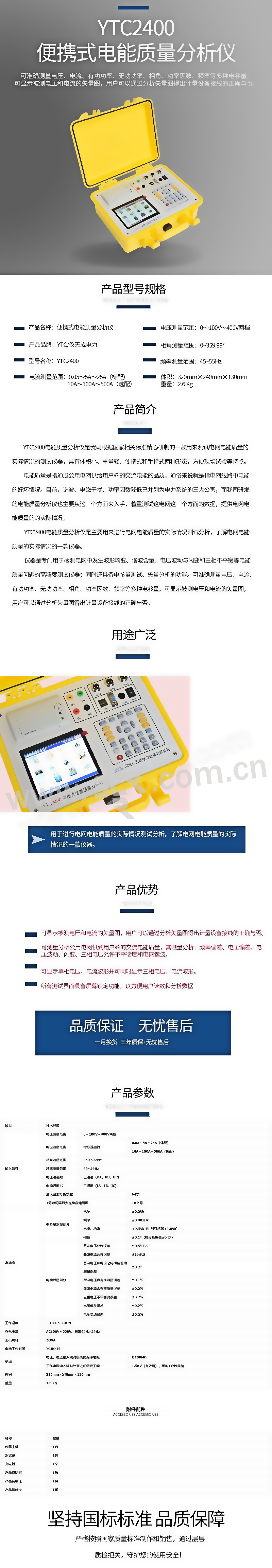 ·可显示被测电压和电流的矢量图,用户可以通过分析矢量图得出计量设备接线的正确与否。·可测量分析公用电网供到用户端的交流电能质量,其测量分析:频率偏差、电压偏差、电压波动、闪变、三相电压允许不平衡度和电网谐波。·可显示单相电压、电流波形并可同时显示三相电压、电流波形。·所有测试界面具备屏幕锁定功能,以方便用户读数和分析数据。