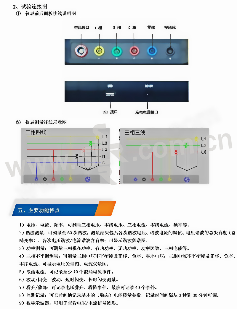 ·配备了大容量的存储器,能够对电网运行进行长期的数据采集检测,配备PC应用软件,把采集的数据上传至计算机,便于进行各种分析