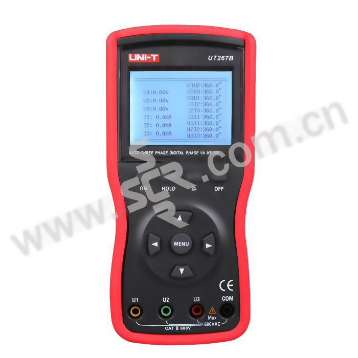 ·UT267B智能型三钳数字相位伏安表选用新型材料设计制作外壳模具,配有的防振、防滑、高绝缘护套所有参数同屏显示,一目了然,尽显精美豪华外观。适用于电力、石化、冶金、铁路、工矿企业、科研院校、计量部门等。尤其适用于电能计费系统及继电保护系统,其供电营销部门的电能计量、用电检查、电力稽查,生技部门的装表接电、继电保护、差动检测、启动试验、变电检修,或电力实训、数字相位伏安表等,技能比武等
