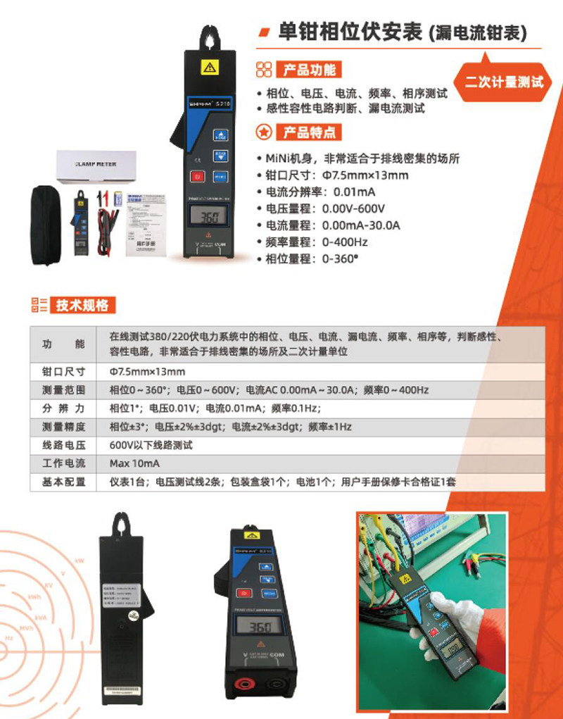 高精度数显单钳相位伏安表(漏电流钳表)