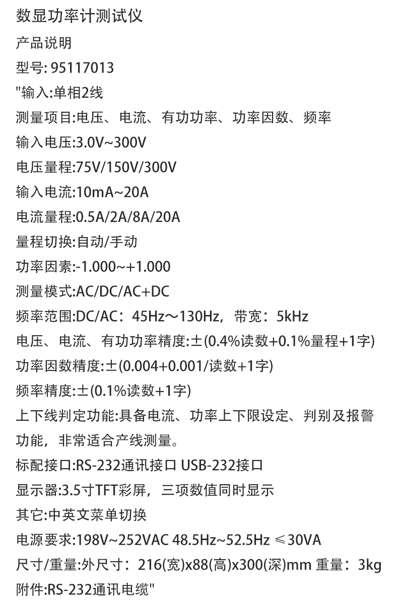 数显功率计测试仪 95117013 216×88×300mm 1台
