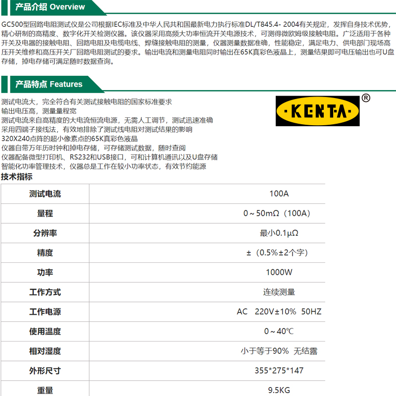 ·测试电流大,完全符合有关测试接触电阻的国家标准要求。输出电压高,测量量程宽。测试电流来自高精度的大电流恒流电源,无需人工调节,测试迅速准确。