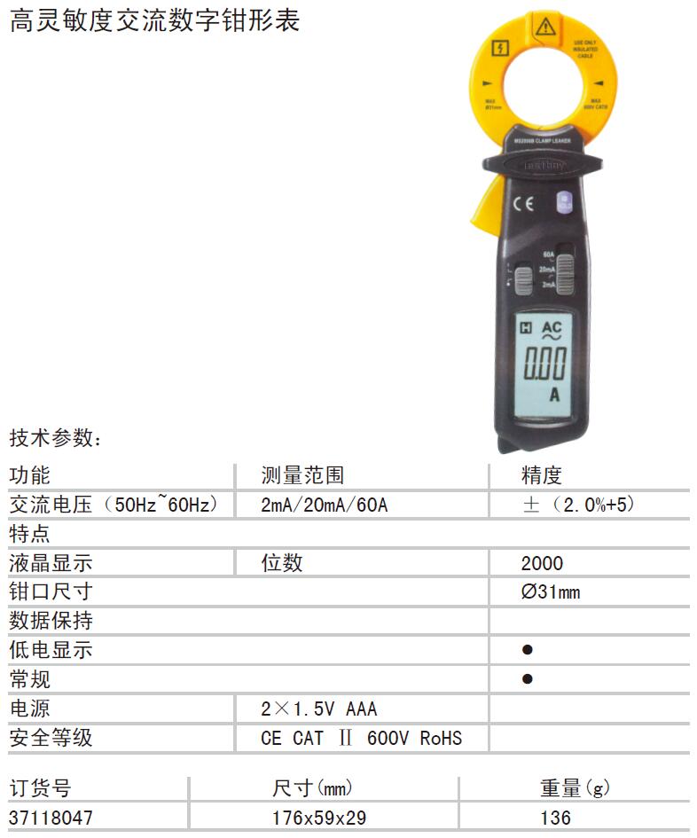 高灵敏度交流数字钳形表