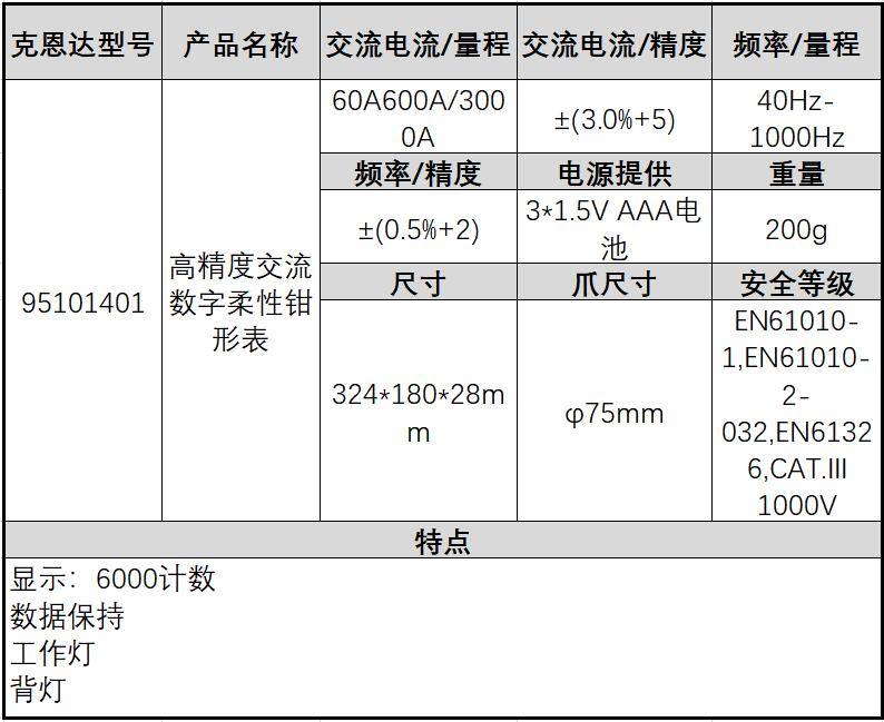 订货号 制造商型号 交流电流量程 交流电压量程 直流电压量程 电阻量程 钳口张开度 备注 价格 购物车
