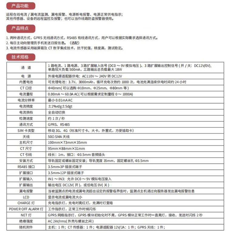 远程断电漏电报警监测仪