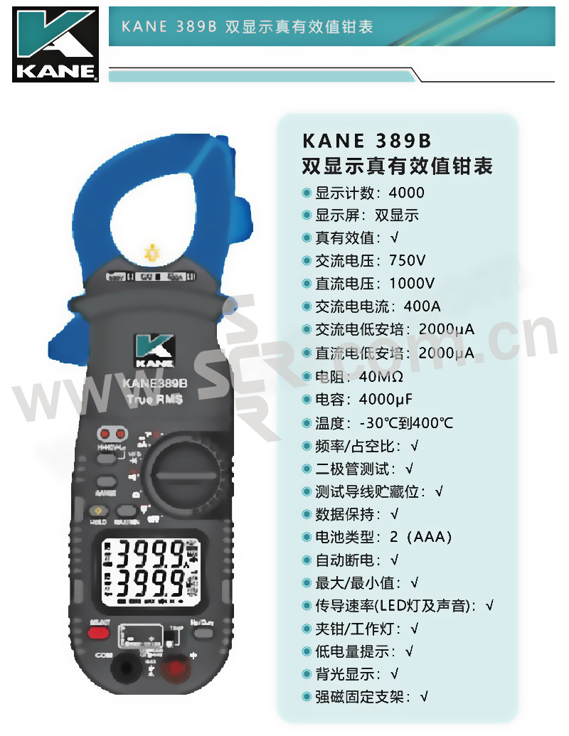 KANE/英国凯恩 漏电流真有效值钳表 KANE-389B 可测量0.01μA级别电流 1台