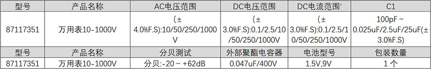 (±3.0%F.S):0.1/2.5/10/50/250/1000V
