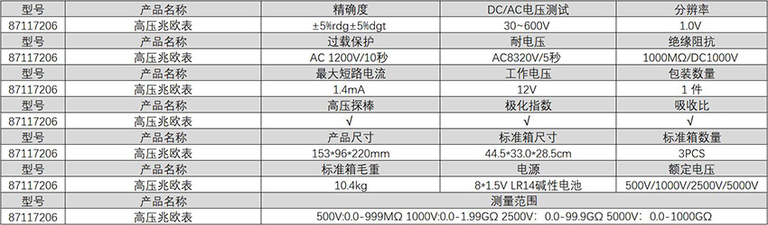 500V:0.0-999MΩ1000V:0.0-1.99GΩ2500V:0.0-99.9GΩ5000V:0.0-1000GΩ