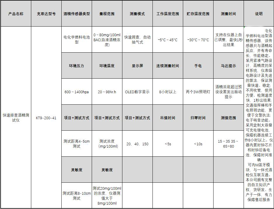 规格:  0~80mg/100ml BAC 制造商型号:  KT9-200-41