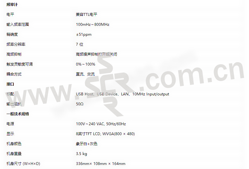 ·160MHz正弦波输出,全频段1μHz的分辨率·50MHz脉冲波形,上升、下降时间可调·500MSa/s采样速度和16bits垂直分辨率·标配等性能双通道,且具有通道独立或通道耦合的输出模式·32Mpts任意波存储器,7GB非易失波形存储·丰富的调制类型:AM、FM、PM、ASK、FSK、PSK、BPSK、QPSK、OSK、PWM、SUM、QAM·8英寸TFT LCD,WVGA(800× 480)·标准配置接口:USB Host、US