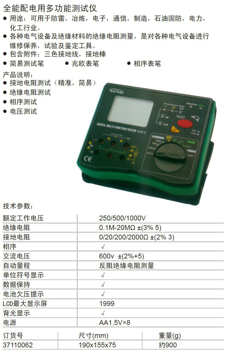 订货号:  A51764 品牌:  TESTBOY/特博特