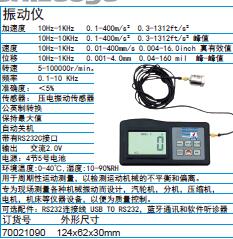 ·频率0.1-10KHz准确度:<5%传感器:压电振动传感器公英制转换保持最大值自动关机带有RS232C接口输出交流2.0V电源:4节5号电池环境温度:0-40℃,湿度:10-90%RH用于周期性运动测量,以检测运动机械的不平衡和偏离。