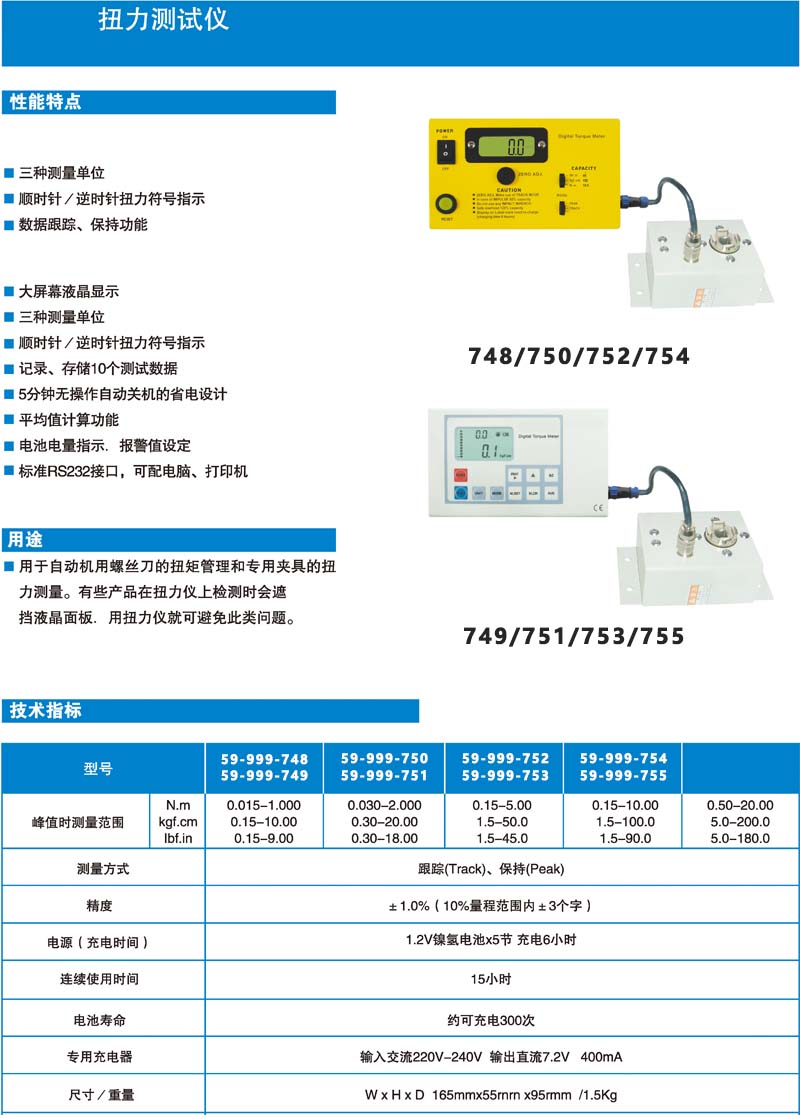 测量范围 0.030~2.000N.m