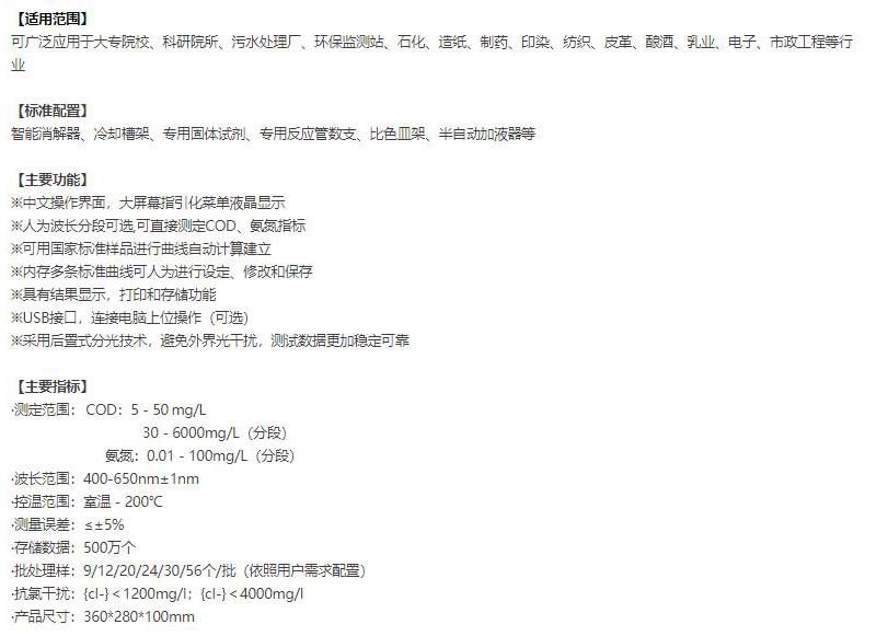 ·人为波长分段可选,可直接测定COD、氨氮指标