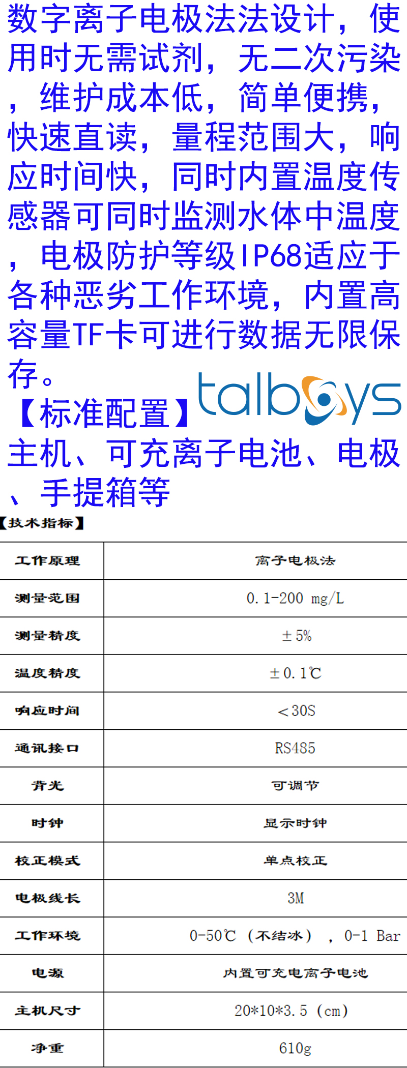 规格:  0~200mg/L 制造商型号:  TS1901004