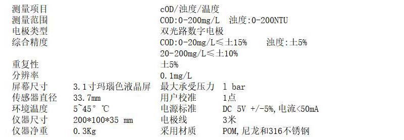规格:  0~200mg/L 浊度0~200NTU 制造商型号:  TS1901006