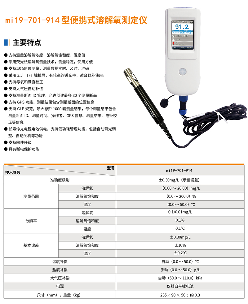 ·采用全新荧光法溶解氧测量技术,无需更换膜片和电解液,不受流速、搅拌环境、化学物质等因素的影响,抗干扰能力强,测量稳定,使用方便 ·采用全新微处理器技术,使用4.3英寸TFT触摸屏,全新UI设计,导航式操作体验,支持滑动操作 ·支持测量溶解氧浓度、溶解氧饱和度和温度值