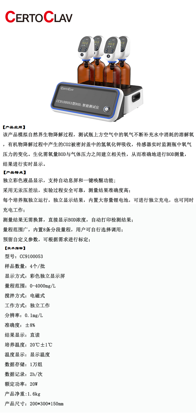 彩屏液晶显示BOD5测定仪