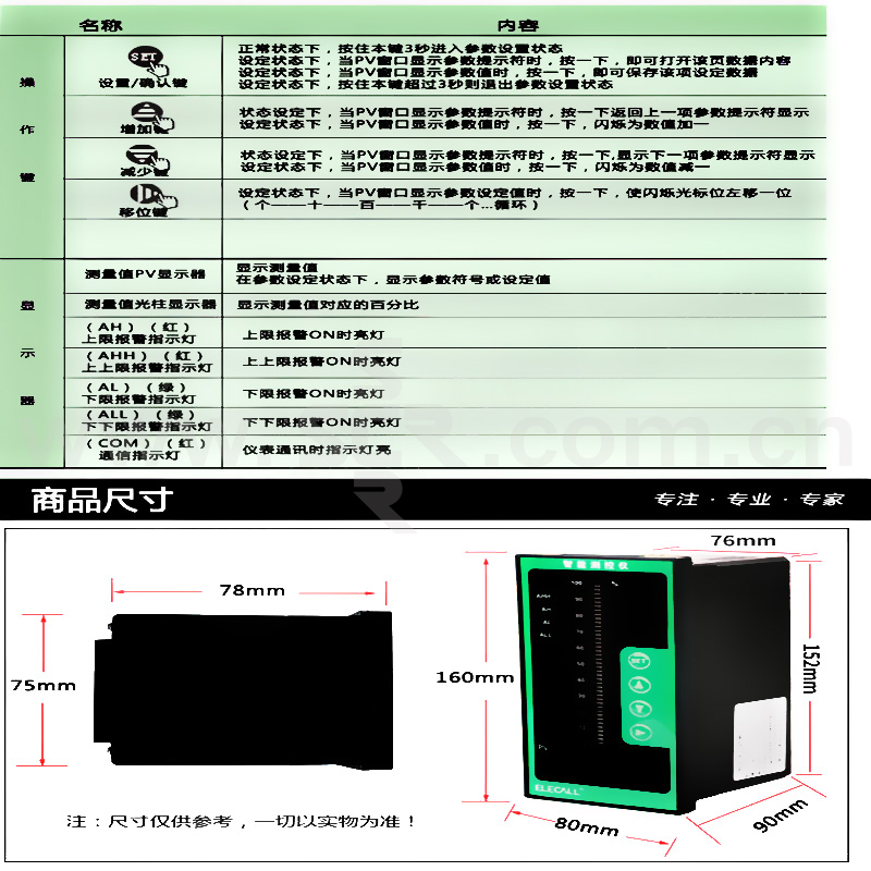 ELECALL/伊莱科 变送器配套光柱表 EHT-S803 S803-01-15-HL-P 上下限 1台