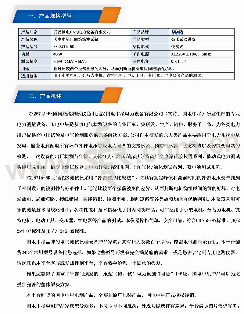 GDZX/国电中星 匝间绝缘测试仪 ZX2671A-5K 测试范围500~5000V 测试精度5% 1套