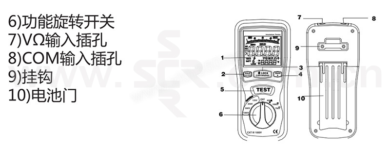 ·DC1000V,AC750V电阻最大4000MΩ双注塑机壳CATIII1000VDC电压精度±0.8%AC电压精度±1.2%最大、最小值保持归零功能