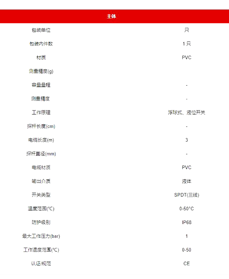 ·可控制排水和蓄水池或槽罐中的液位。不含水银的开关是装配在聚丙烯保护中的一个微型转换开关。这个液位开关可配合一个重量平衡锤来控制泵关开从而让液位上升或下降(平衡锤需另购)。