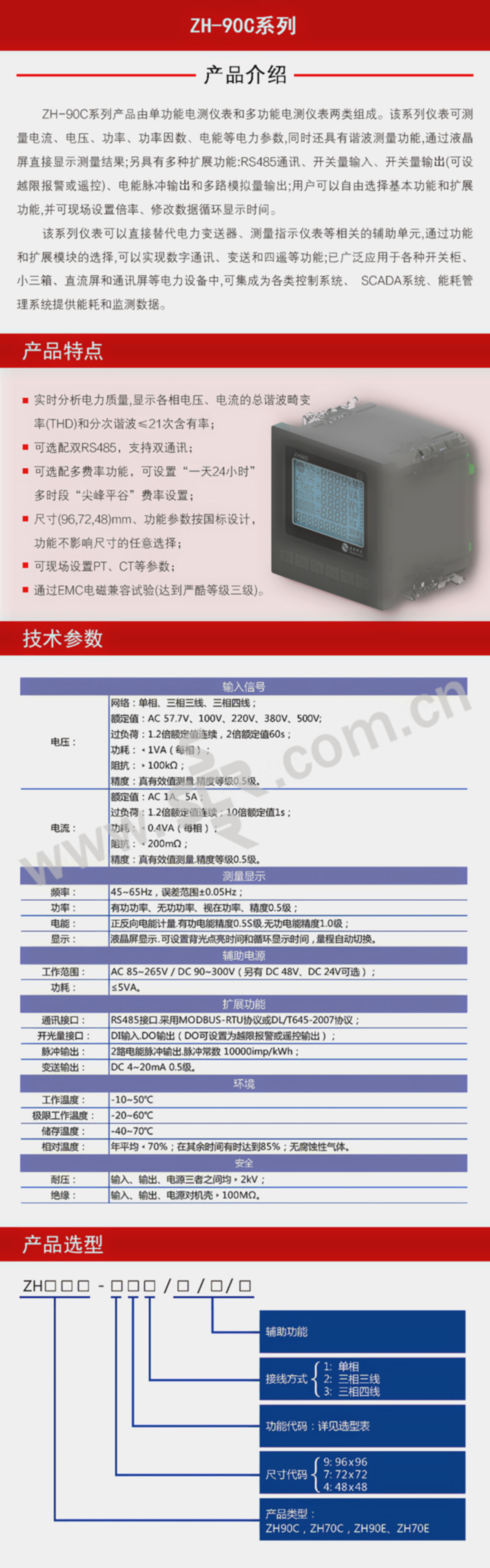SUNHOPE/正华科技 90C系列智能电力仪表 ZH70E-I(DS) 数码 单相电流 1台