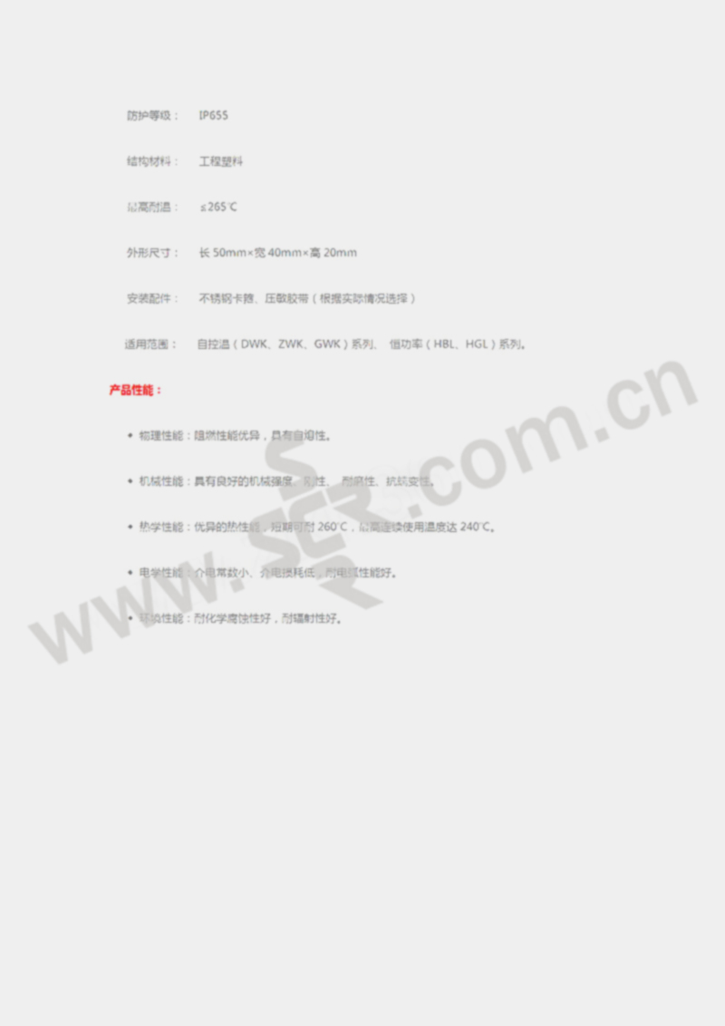 ·物理性能:阻燃性能优异,具有自熄性·机械性能:具有良好的机械强度、刚性、耐磨性、抗蠕变性·热学性能:优异的热性能,短期可耐260℃,连续使用耐温可达240℃·电学性能:介电常数小、介电损耗低,耐电弧性能好·环境性能:耐化学腐蚀性好,耐辐射性好